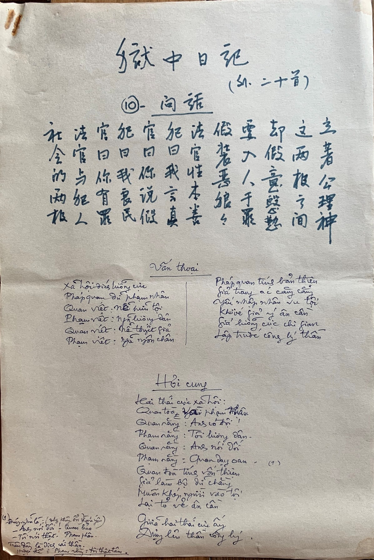 2.4 Bản thảo dịch bài Vấn thoại, bài thơ bằng tiếng Hán của Hồ Chí Minh
