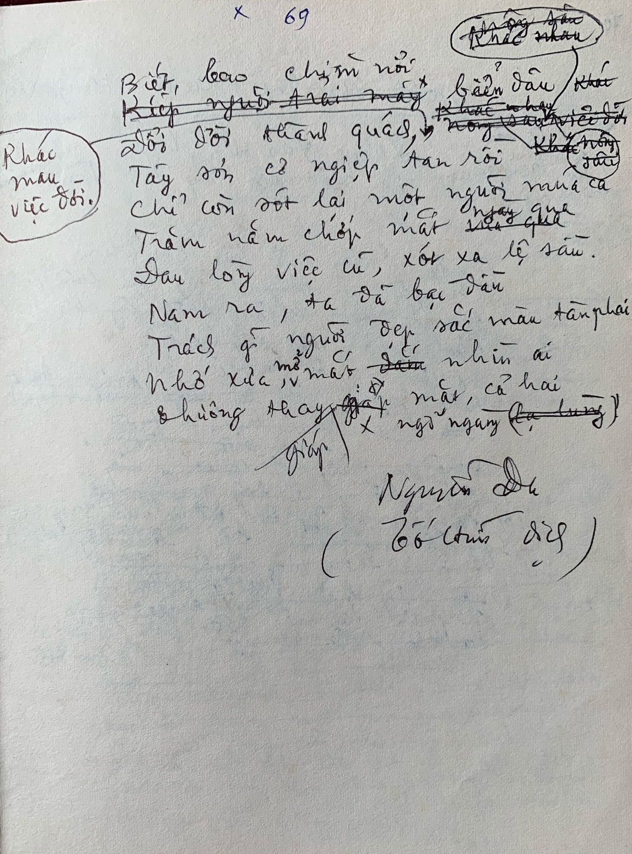 Bản thảo dịch bài Cuối trời nhớ Lý Bạch và Túi rỗng của nhà thơ Đỗ Phủ