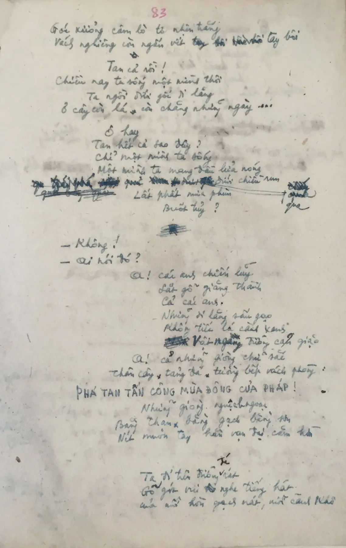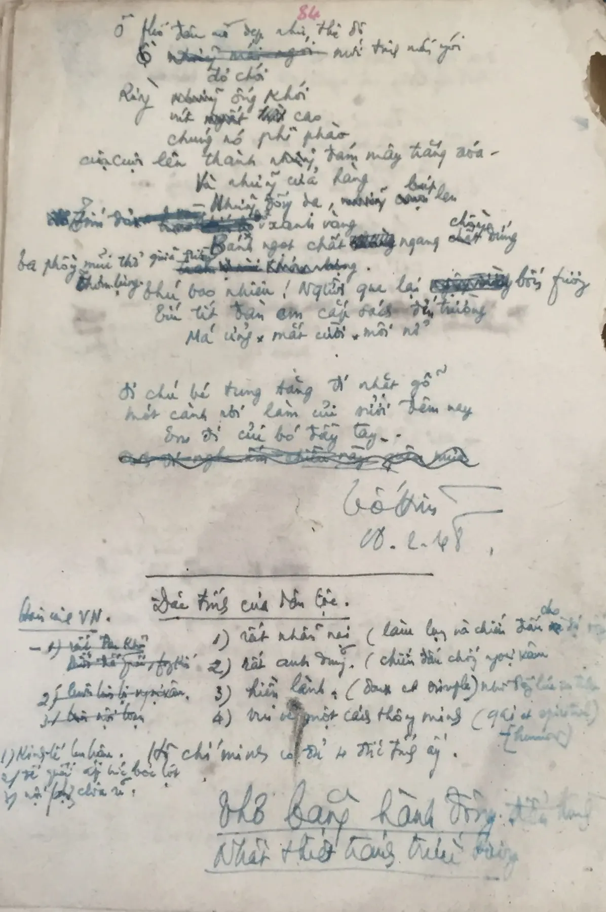 Draft of the poem “Naked city" - a gift from To Huu to Nguyen Dinh Thi during the afternoon in Yen Bai, 1948
