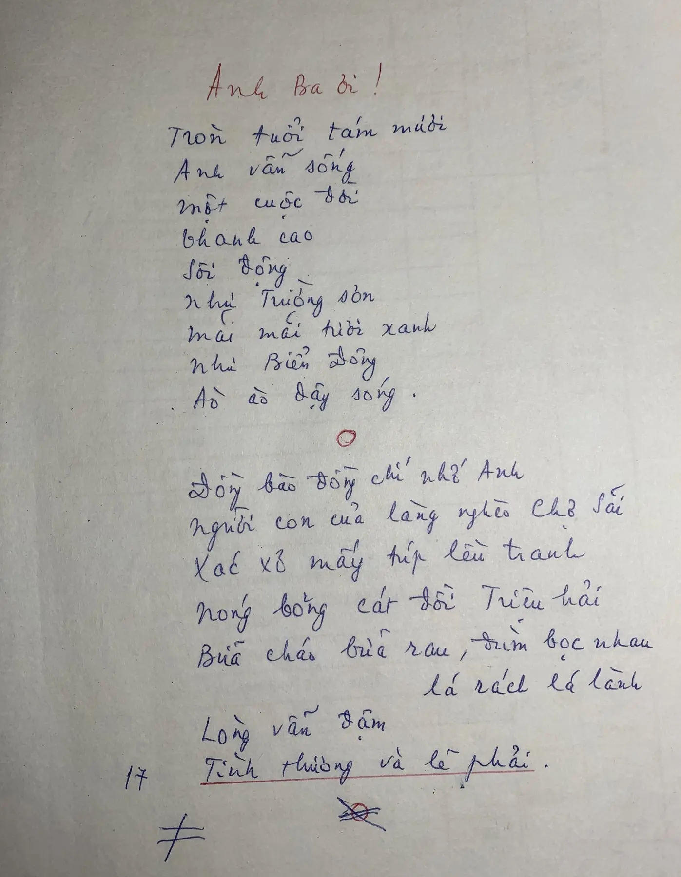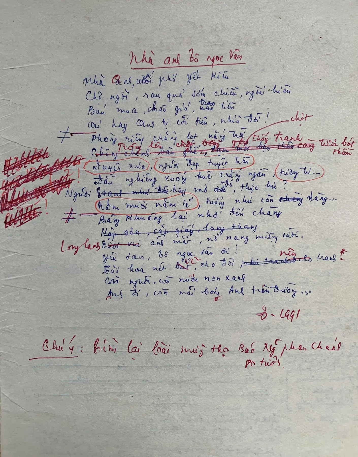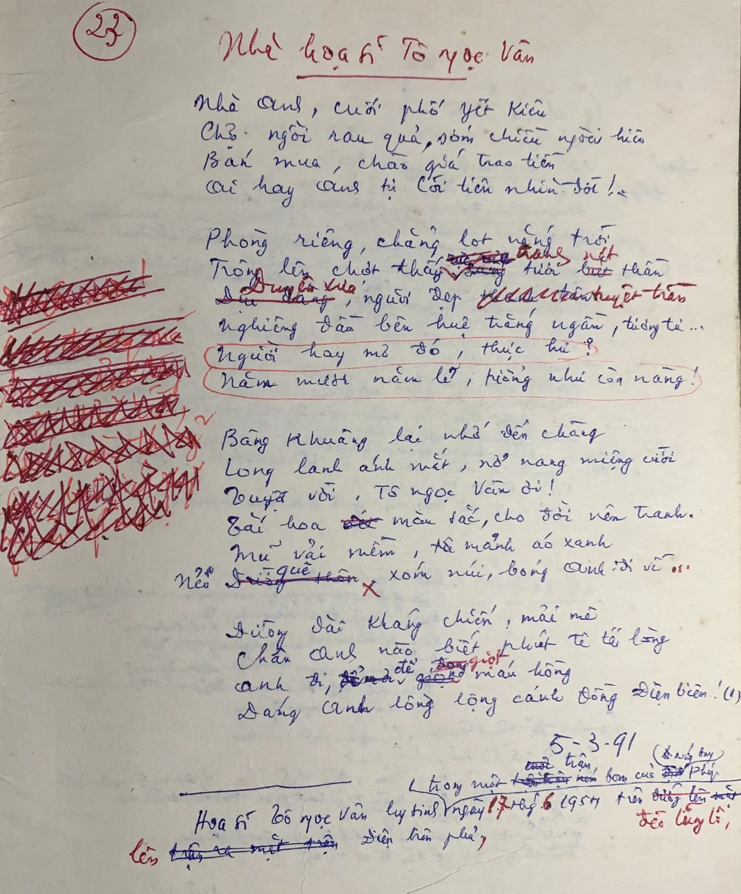 Draft of the poem “With artist To Ngoc Van”
