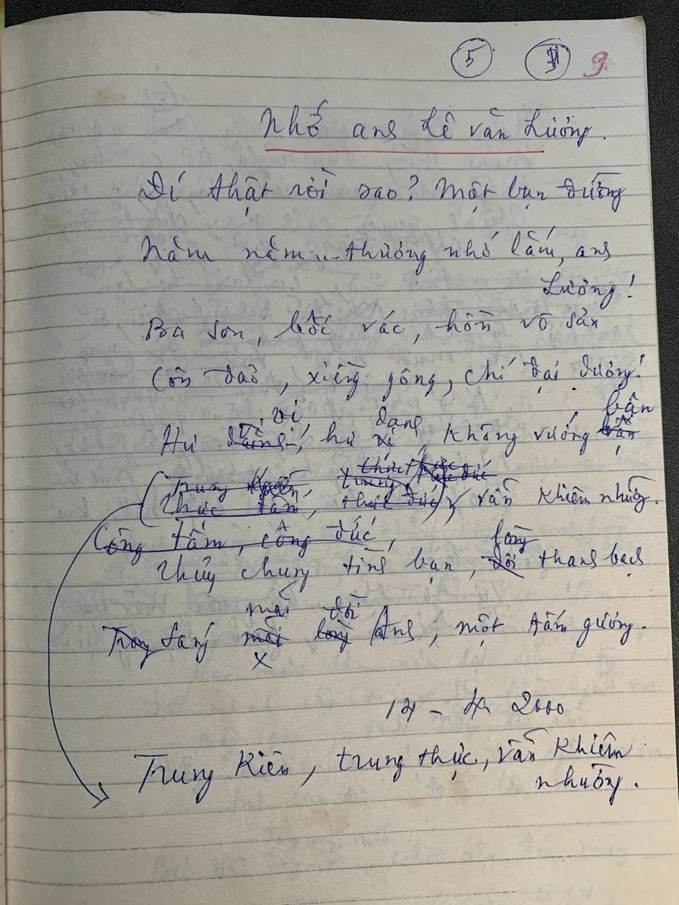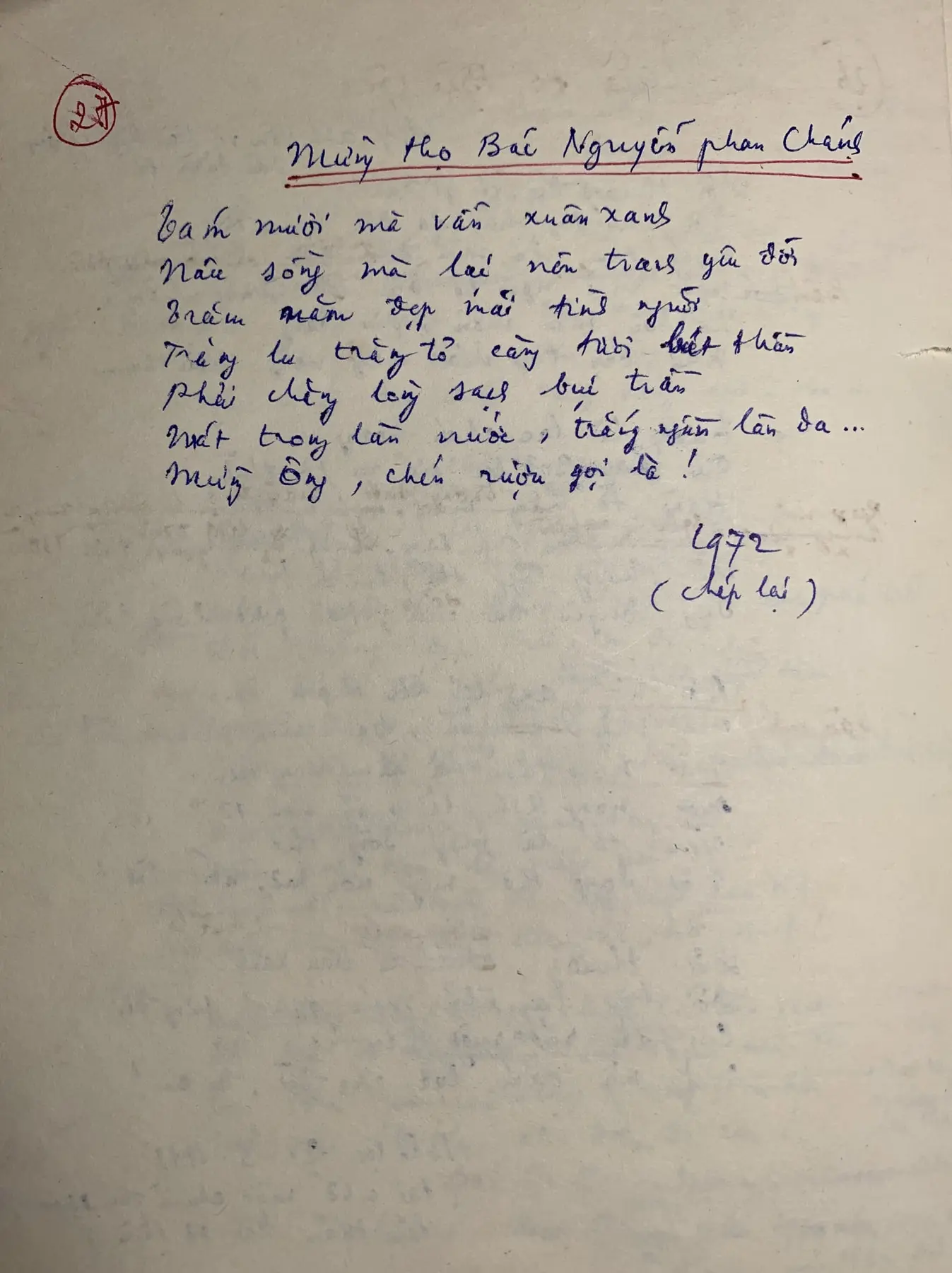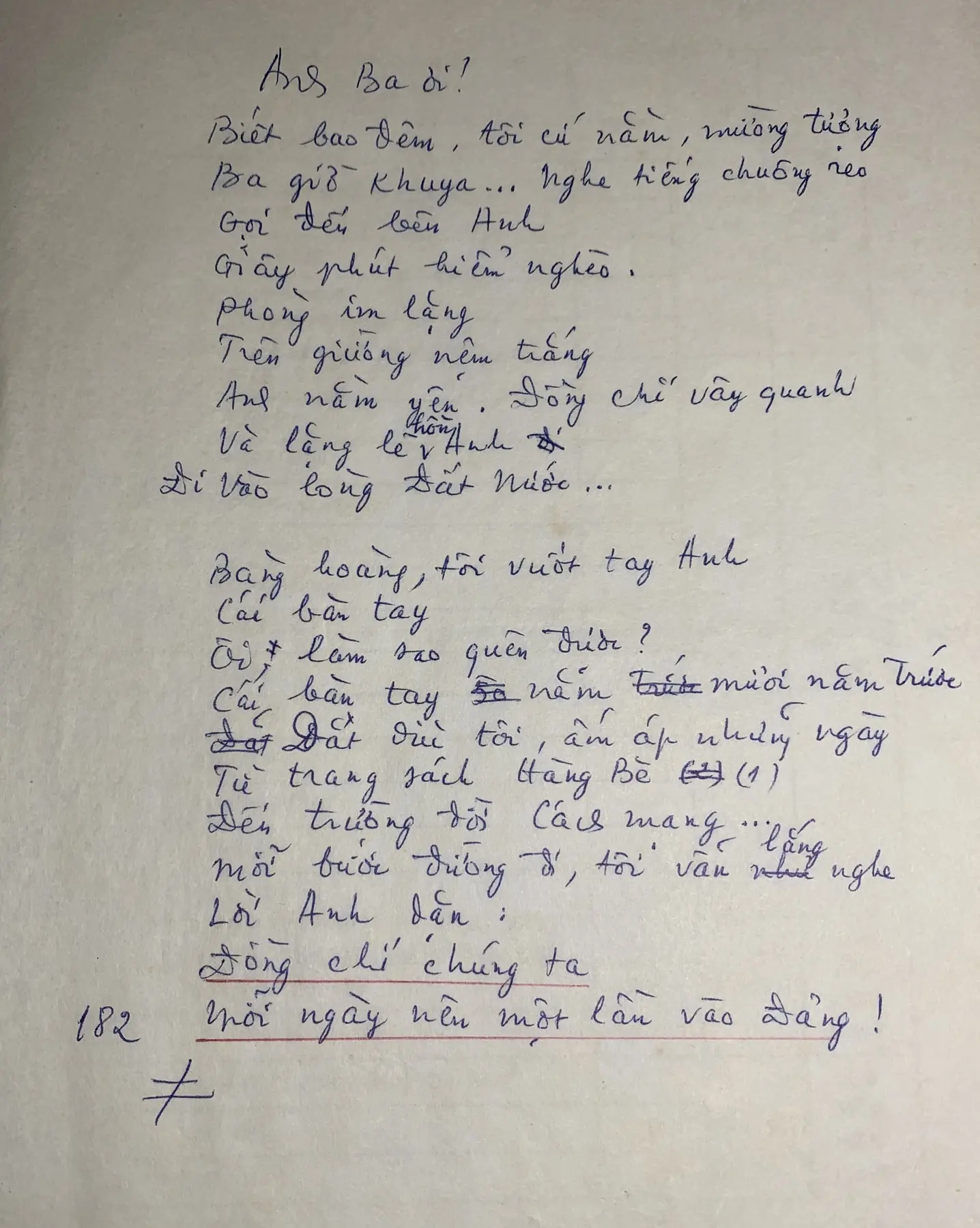 Draft of the poem “With artist To Ngoc Van”
