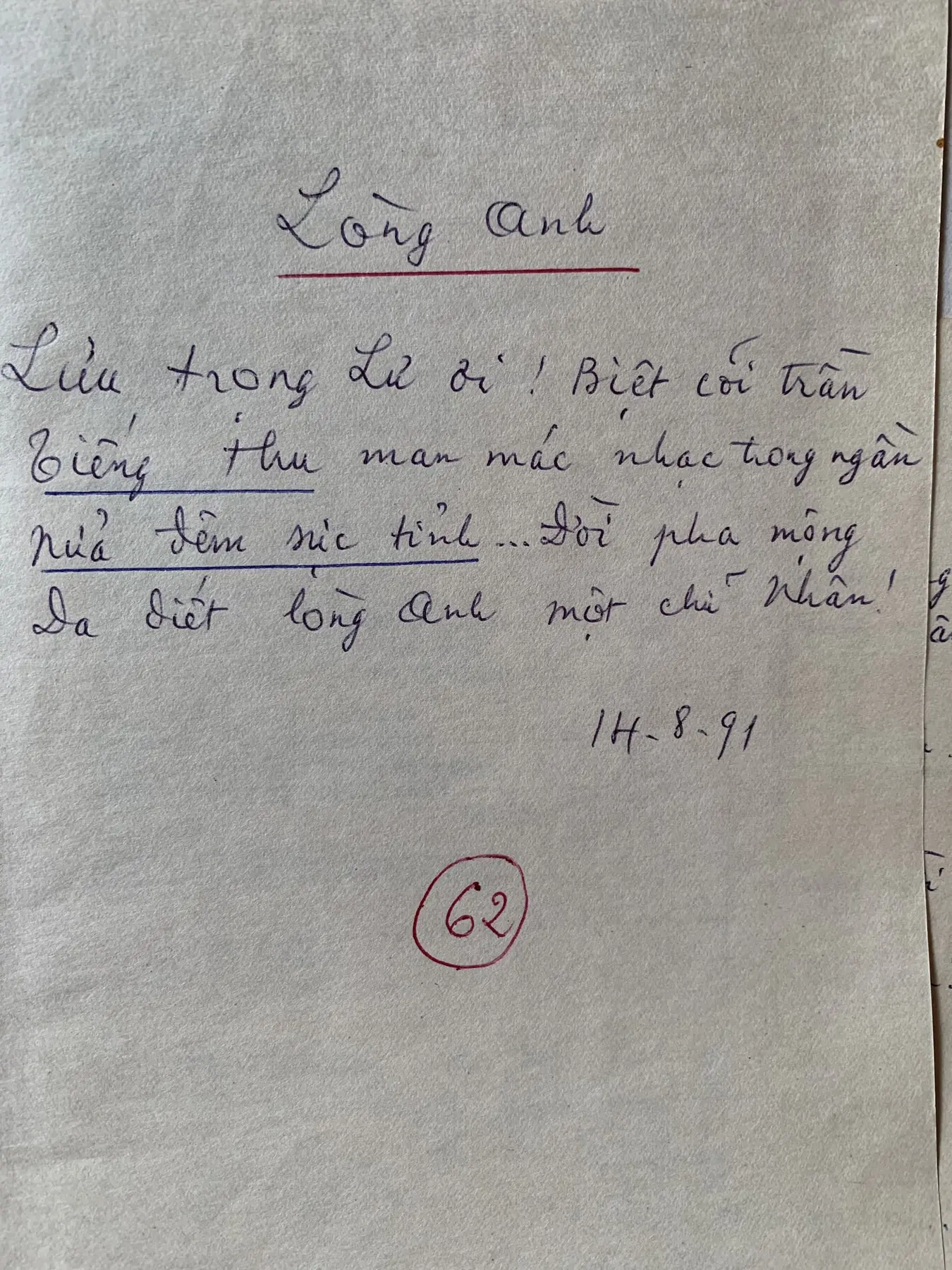 Poem written for Luu Trong Lu 14/8/1981