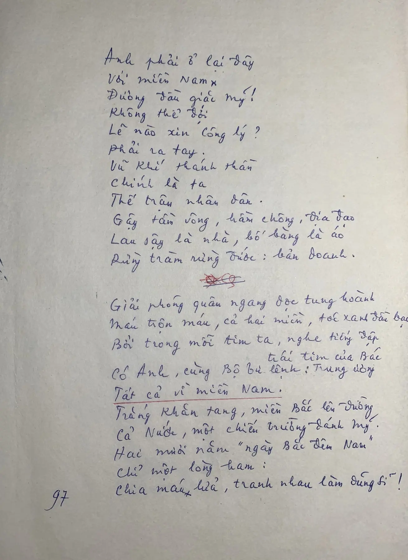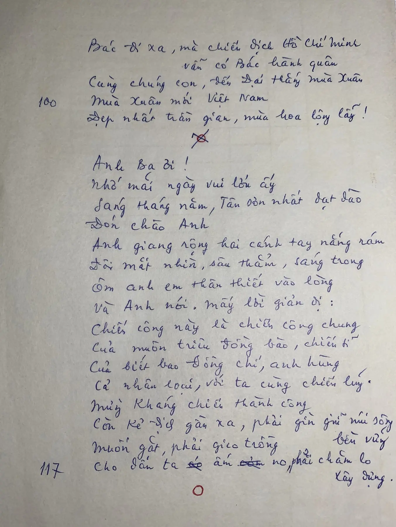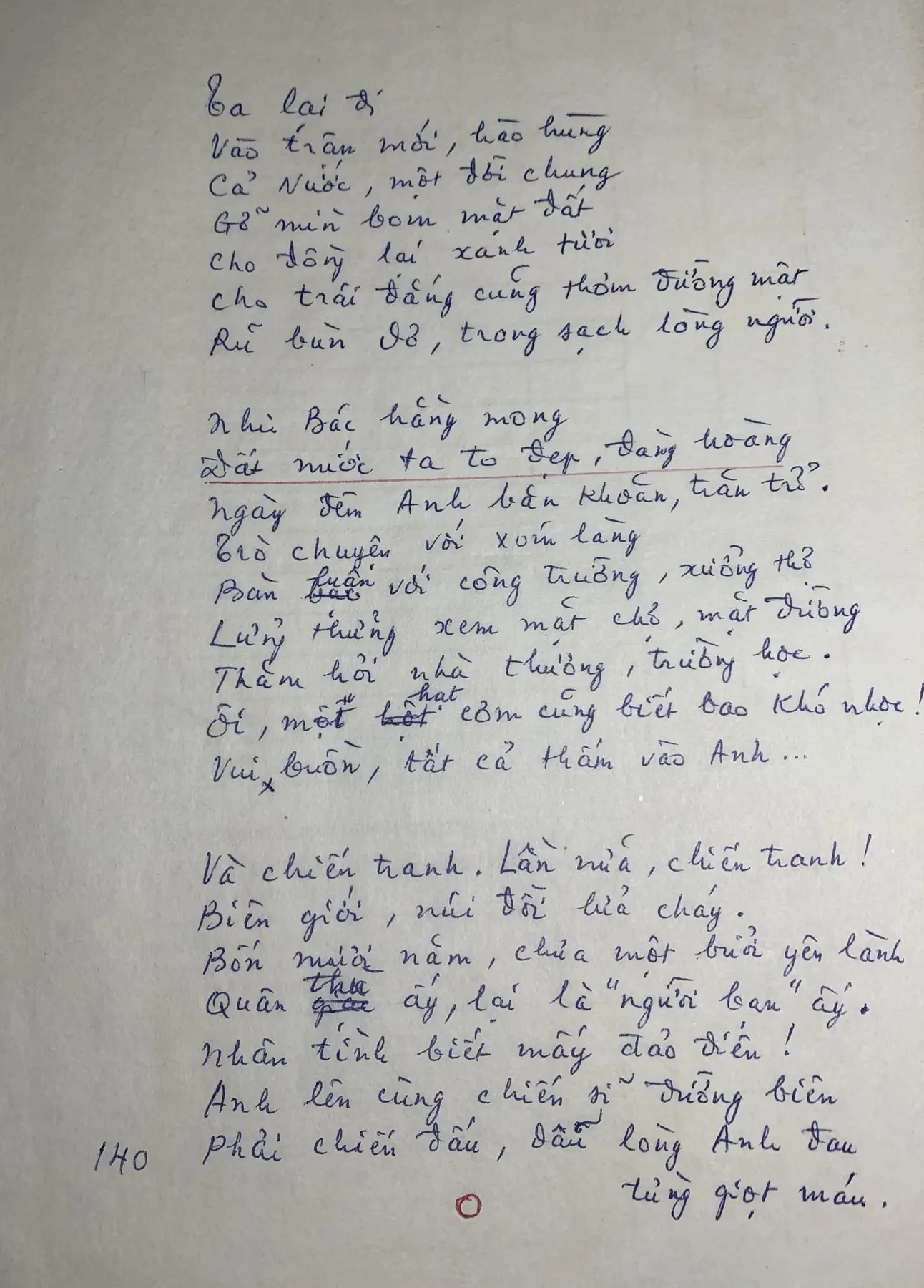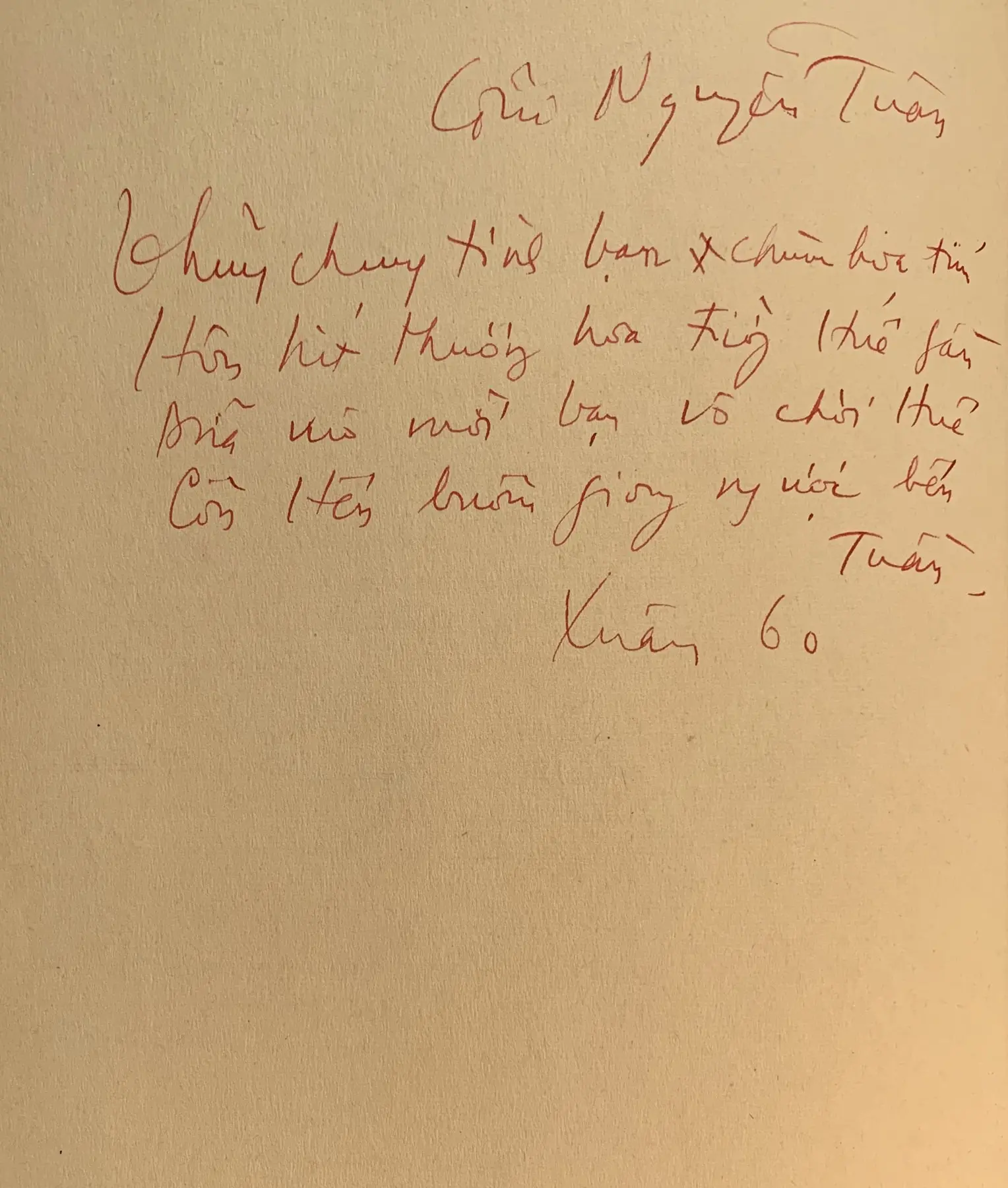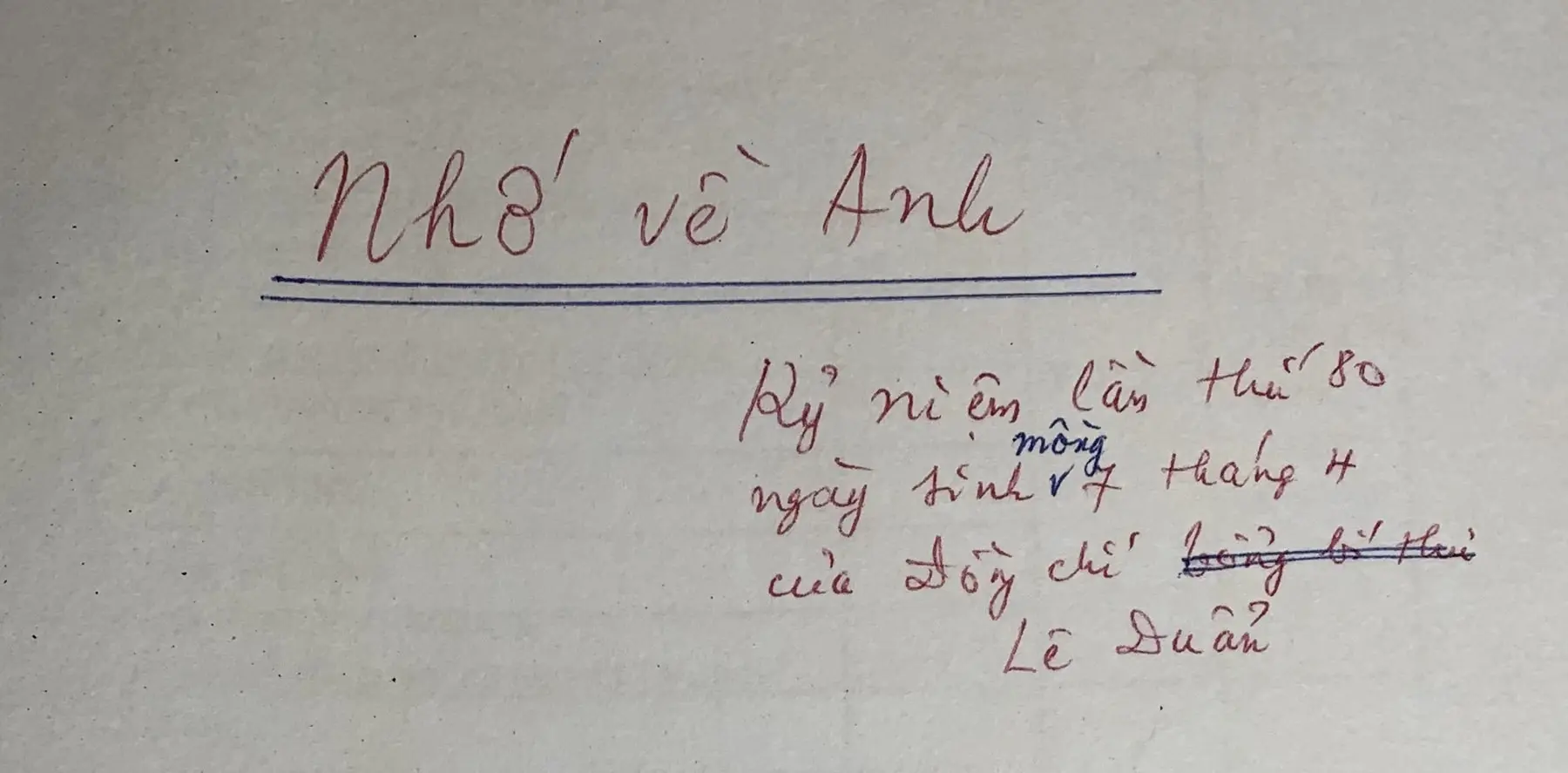 Bản thảo bài thơ viết tặng Lê Đức Thọ.