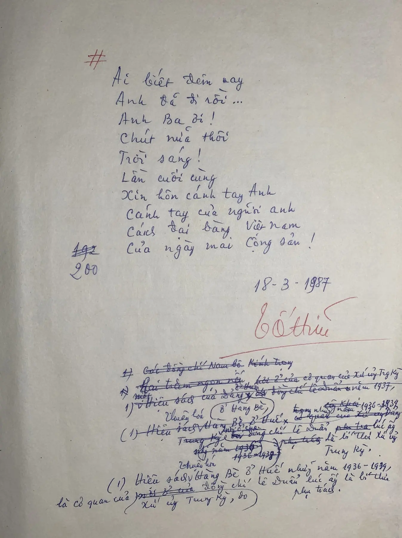 Poem to pay tribute to General Secretary Le Duan "Missing you",1986